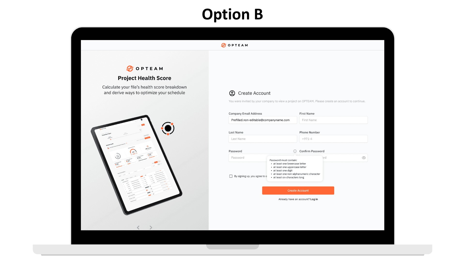 Product design work focused on improving OPTEAM’s signup and onboarding experience.