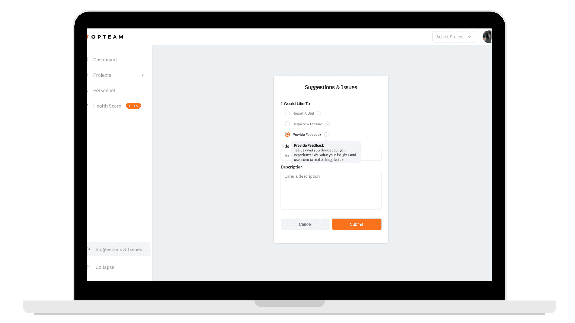 Designed the Issues and Suggestions flow, allowing users to report problems, request features, or share feedback directly from the product